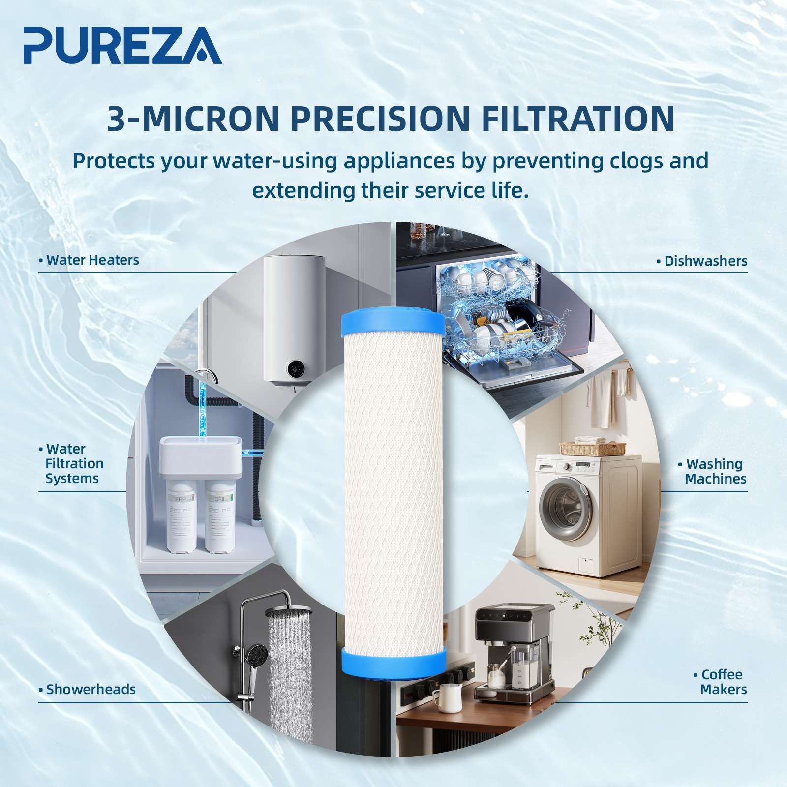 Designed as a universal 10-inch carbon block, it fits most standard whole-house systems, traditional under-sink filtration systems on the market. Its easy installation and quick replacement make it the ideal choice for both home and commercial use.