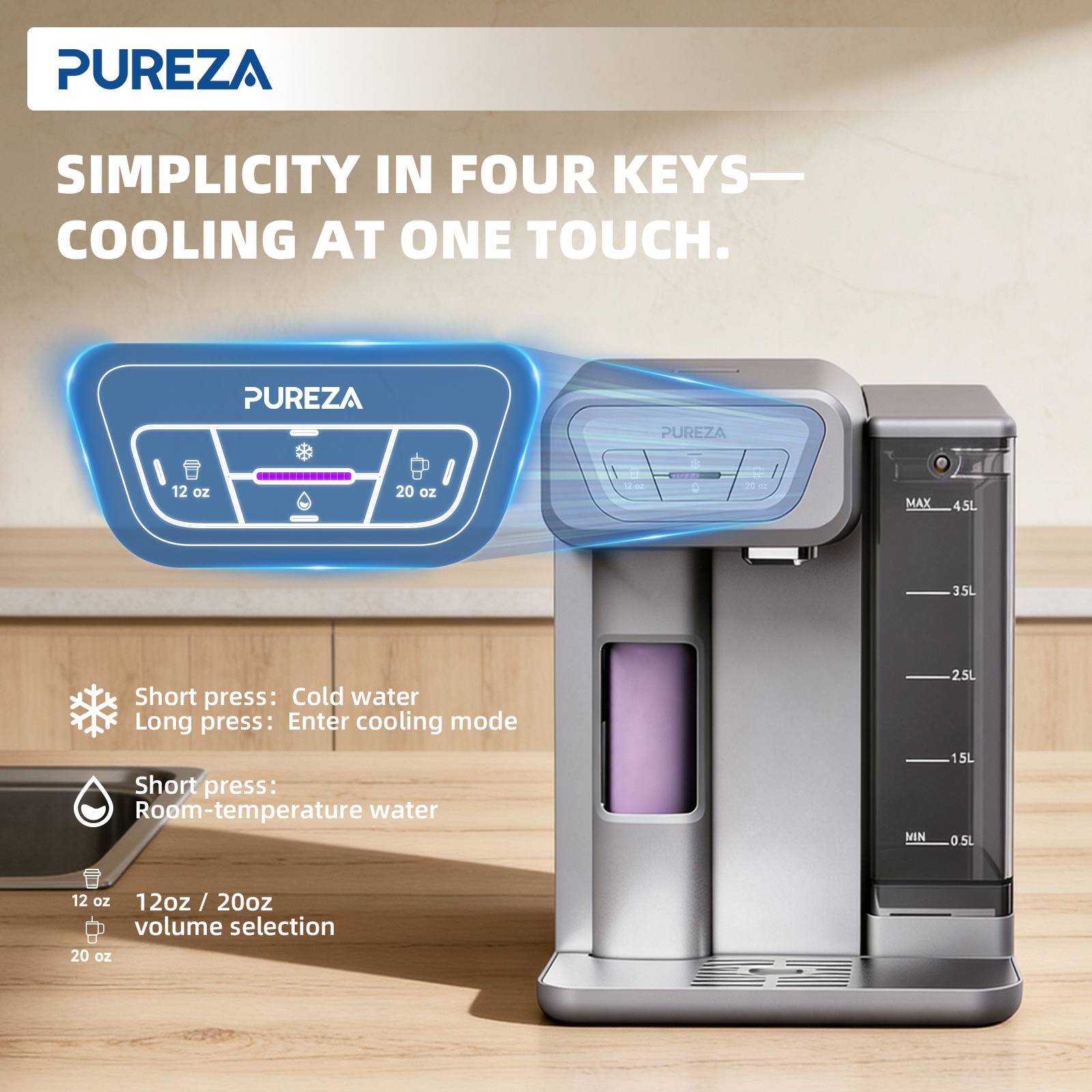 Con un tanque de frío de 1,2 L, el PU-T02 puede almacenar más agua fría a la vez, garantizando un enfriamiento estable incluso durante varios usos consecutivos. Su tanque de agua de alimentación de 4,5 L es ideal para familias y pequeñas oficinas, ya que reduce el tiempo de espera y mantiene agua fría siempre disponible.